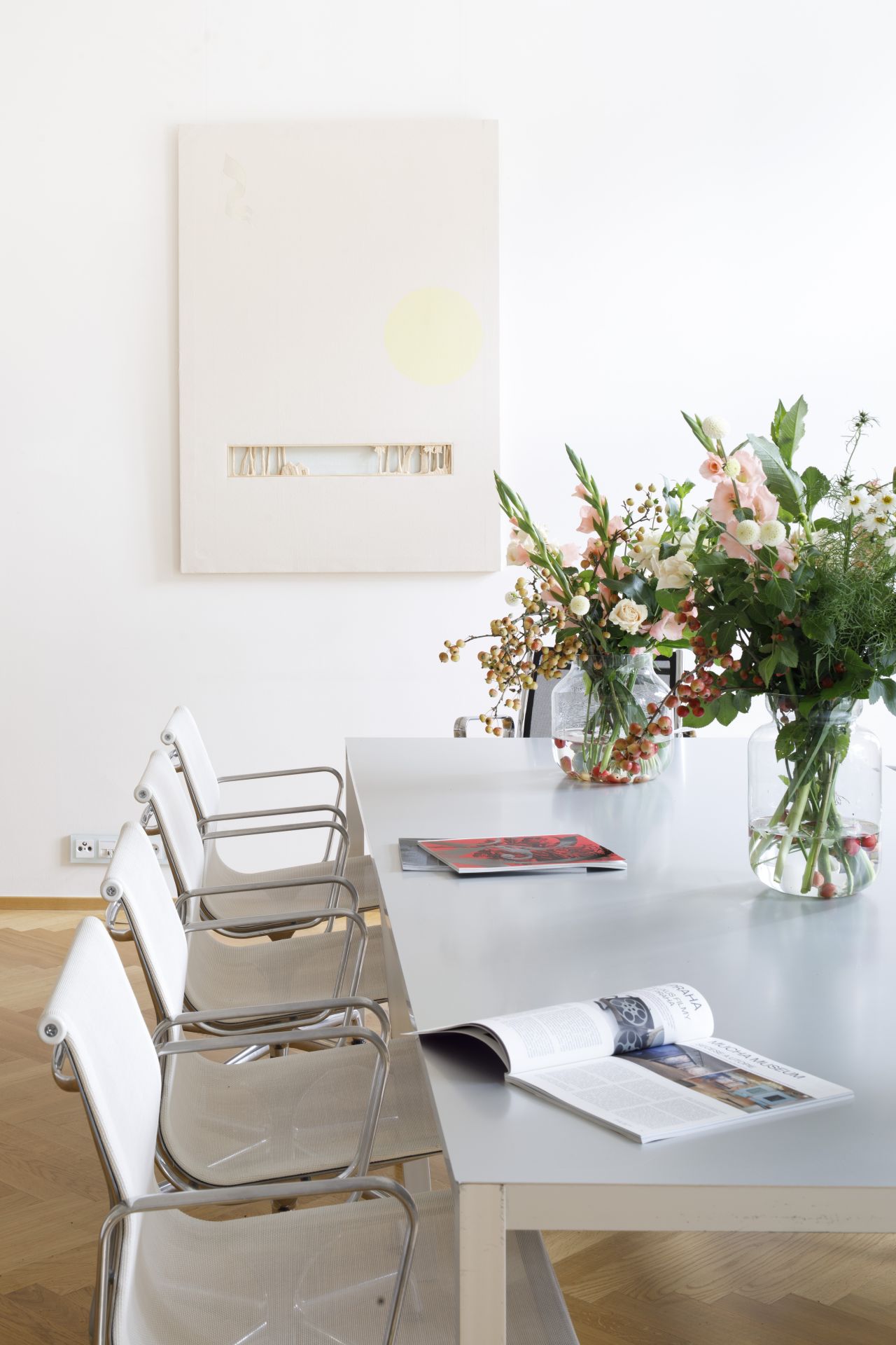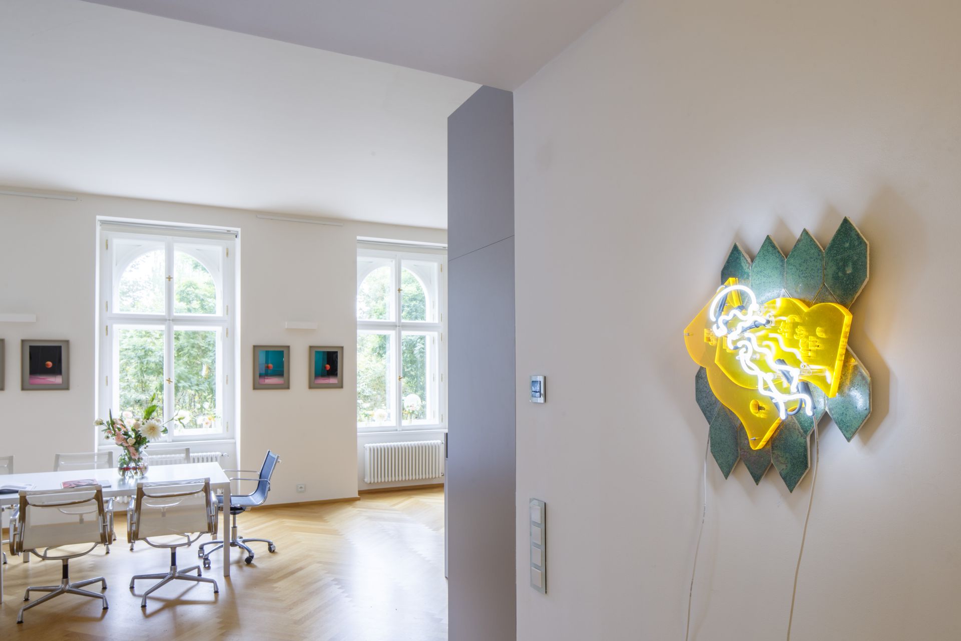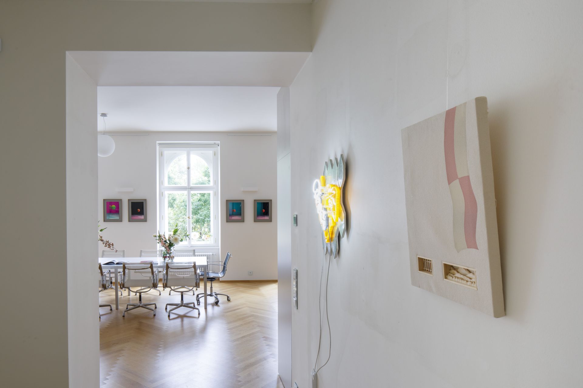 The exhibition continues to explore the balance between the aesthetic function of art and its ability to cultivate the environments we inhabit. Once again, various media and modes of expression—from painting to objects—come together here, always with an emphasis on context and sensitive integration into the space. The selection of artists reflects current tendencies in contemporary art.