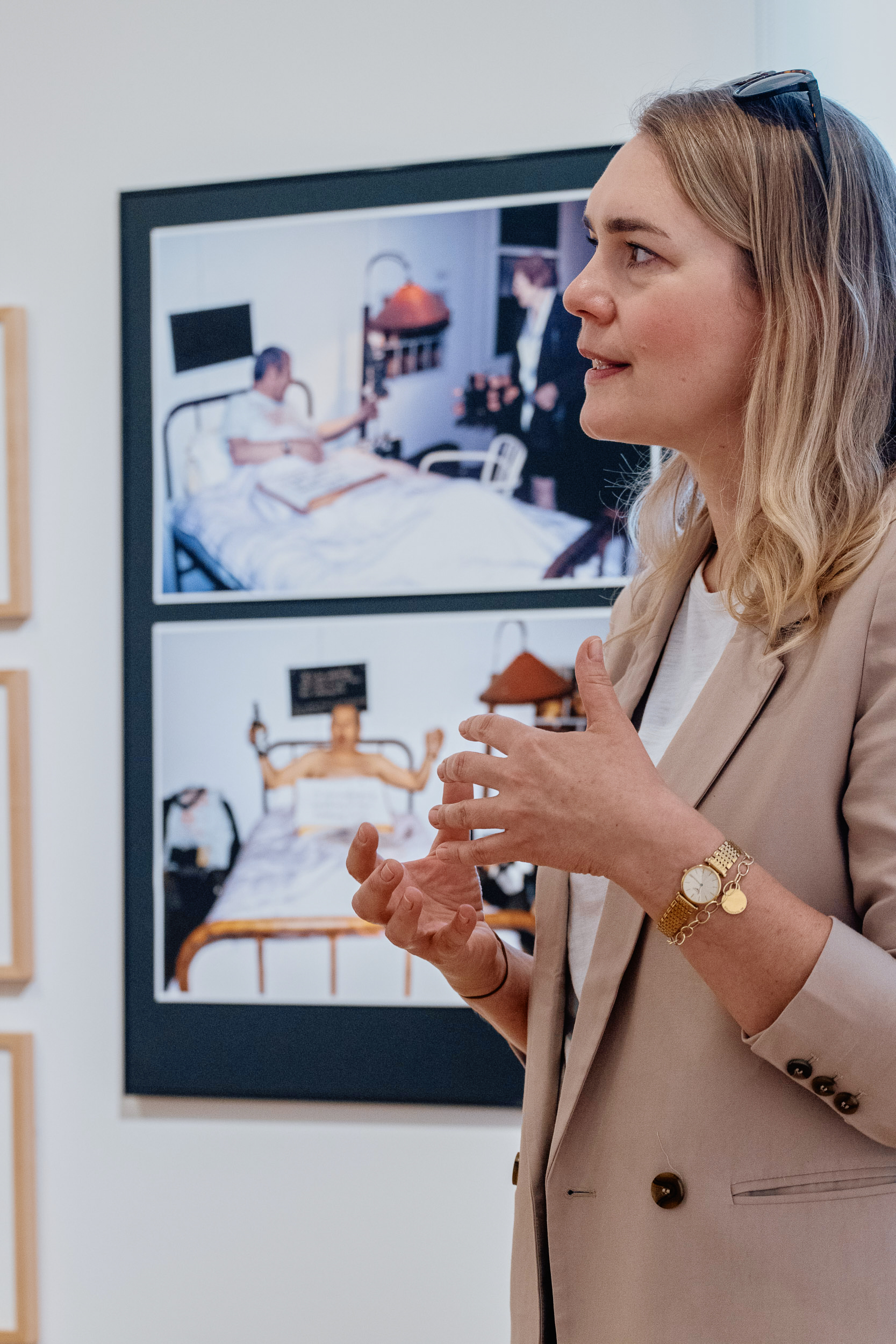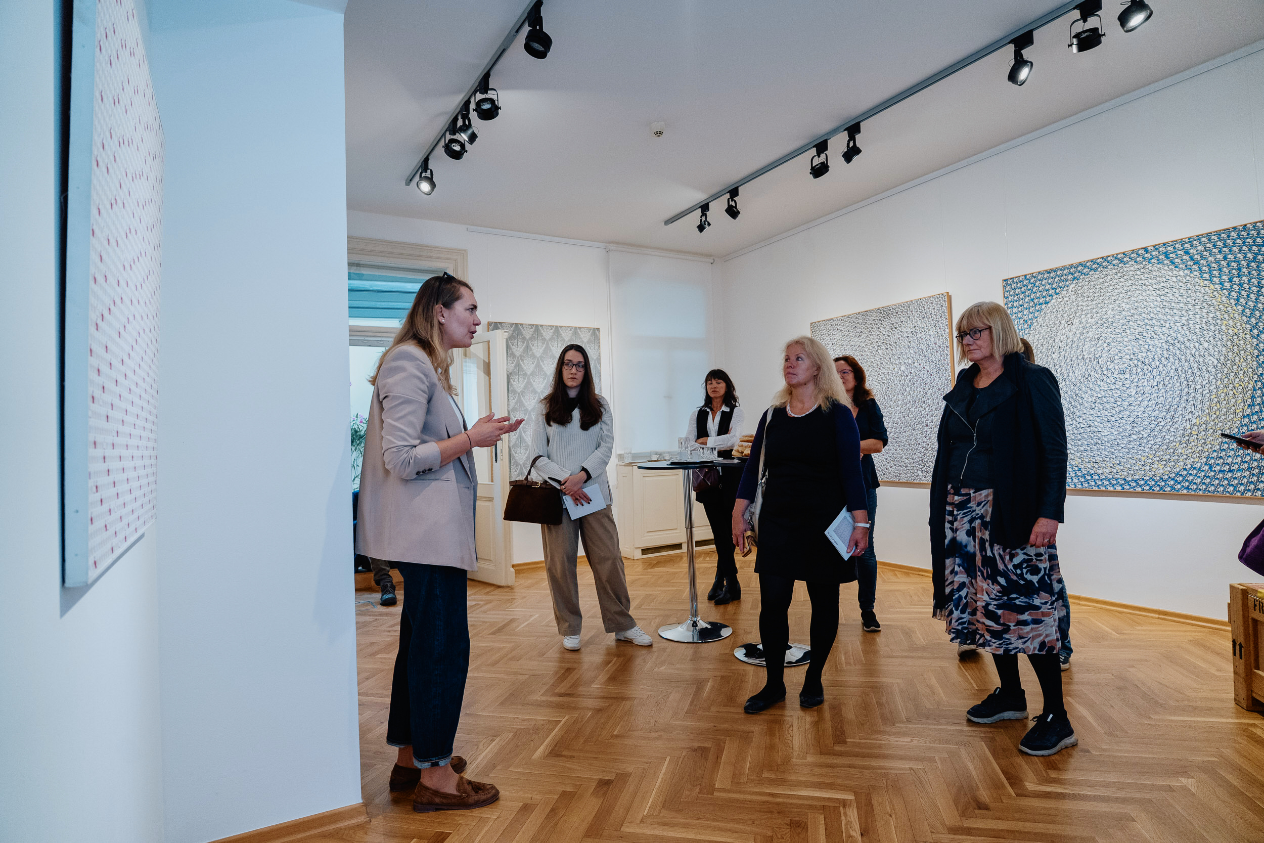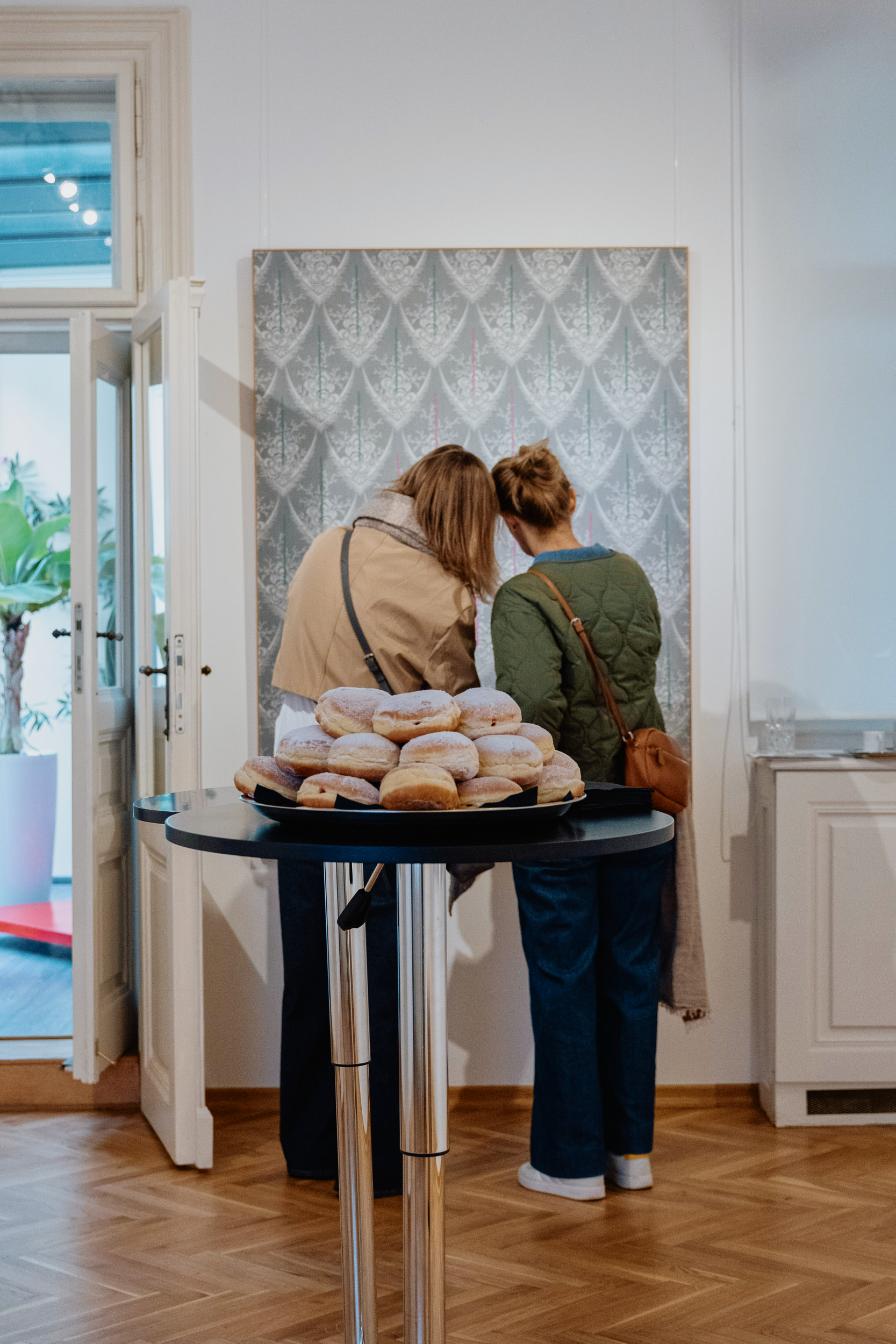 Výstava probíhala od 25. 9. 2025 do 17. 10. 2025 a jejími kurátory bylo duo Lenka Šimková a autorčin partner Jan Ságl. V rozhovoru s Michalem Šimkem jste probrali, jak vnímá pohled na dílo z pohledu odborníků a životní partnera a jak se tyto pohledy mohou protínat. Zmínili jsme rovněž fascinující sérií maleb a tisků s králíky a její časovou náročnost i řemeslnou preciznost. „Výstava se z mého úhlu pohledu povedla, odborné i široké veřejnosti se líbila, líbily se jim také naše prostory, které jsou i nejsou výstavní,” hodnotí výstavu Michal Šimek a doplňuje: „myslím, že do našeho specifického prostoru výstava perfektně zapadla, a to i díky práci obou kurátorů.”